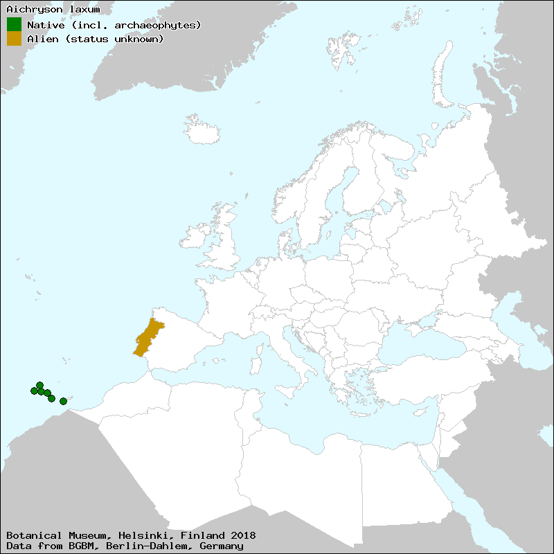 Distribución: Endemismo canario presente en Fuerteventura, Gran Canaria, Tenerife, La Gomera, La Palma y El Hierro. También presente como especie introducida en el Portugal continental (ver mapa de distribución en Euro+med)